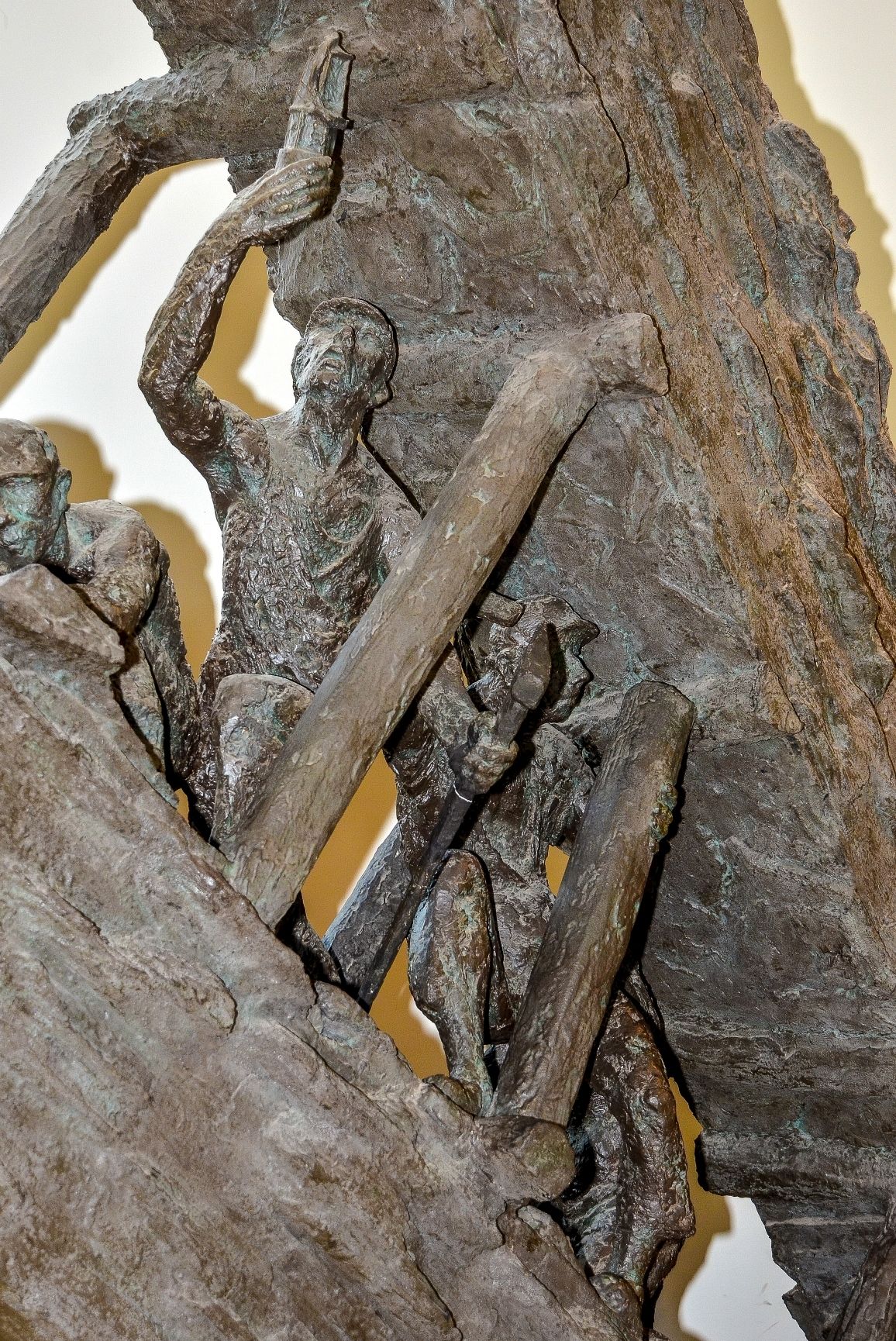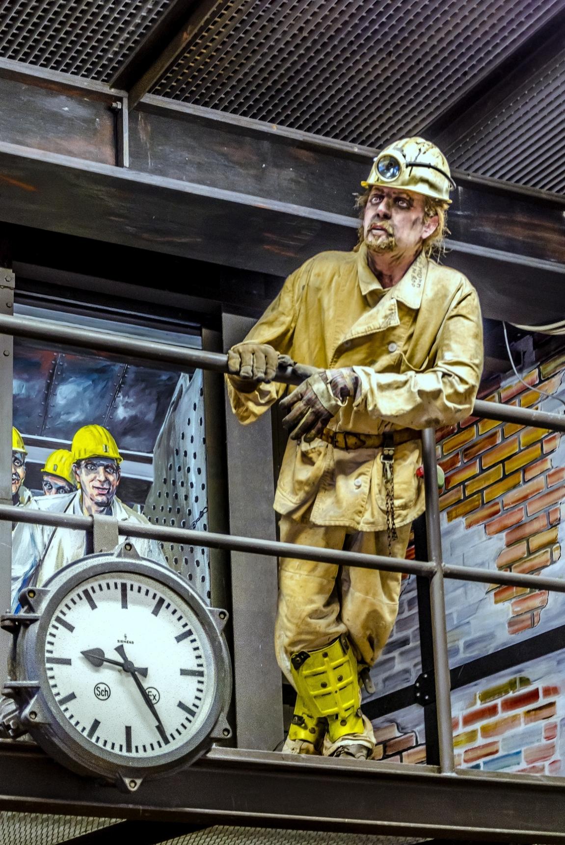 Wie viele Skulpturen erwachsener Bergarbeiter zeigen auch diese die Grubenlampe, mittels derer Bergleute als Bergleute erkannt werden können. An der Kopfbedeckung wiederum lässt sich erkennen, dass es vor dem Ersten Weltkrieg noch keine Helmpflicht gab – und der Kopf trotz Hut eher ungeschützt war. Zum anderen weisen Haltung, Ausdruck und die sichtbaren Muskelpakete den Bergmann als klassischen „echten Kerl“ aus. „Auffällig an den Arbeiterdarstellungen der Montanindustrie ist, dass sie eher ein historisches Handwerkerethos als das moderner Industriearbeit vermitteln. Mit der wachsenden Rüstungs- und machtpolitischen Bedeutung der Montanindustrie wurden die dargestellten Bergleute sowie Hüttenund Stahlarbeiter zudem heroisch überhöht und sozusagen zu "Helden der Arbeit" stilisiert, was in ihren kraftvoll-muskulösen Körpergestaltungen mit häufig bloßem Oberkörper vielfach zum Ausdruck kommt. Wegen ihrer schweren und gefahrvollen Arbeit und wegen ihrer scheinbaren Wehrhaftigkeit, sei es an der Abbaufront, sei es beim Bearbeiten des glühenden Eisens oder beim Formen des heißen Stahls, eigneten sie sich besonders gut dafür. Zudem förderte die geringe Beschäftigung von Frauen in der Montanindustrie den heroischen Männlichkeitskult der Branche zusätzlich.“