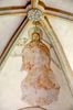 ▲ Wie der Engel gegenüber geht auch dieser Engel auf die erste Ausmalung zurück, ist jedoch gleichfalls stark übergangen. Die Hände mit dem verdeutlichten Handballen und dem Griff am Schwert zeigen Parallelen zu den Darstellungen in der Vierung und der Nordapsis. Das Schwert weist den Engel als Erzengel Michael aus. Eine Kombination der beiden Erzengel Gabriel und Michael als Wächter an Kirchenportalen oder als Begleiter Mariens in Chören ist sehr verbreitet in der christlichen Ikonographie.