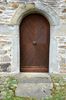 ▲ Blickt man von der Westseite auf den Kirchbau, so findet man im nordwestlichen Schiffjoch das heute zugemauerte, frühere romanische Portal mit Christus-Aureole. Vor dem Portal fand man bei Grabungsarbeiten einen rechteckigen, 33 x 45 cm großen, 1,4 m tiefen Brunnen, einen sogenannten Hilligen Pütt oder Hilgenpütgen. (Hillig = Heilig, Pütt m. Pütte f. (Pütten; Püttken) gemauerter Brunnen.)