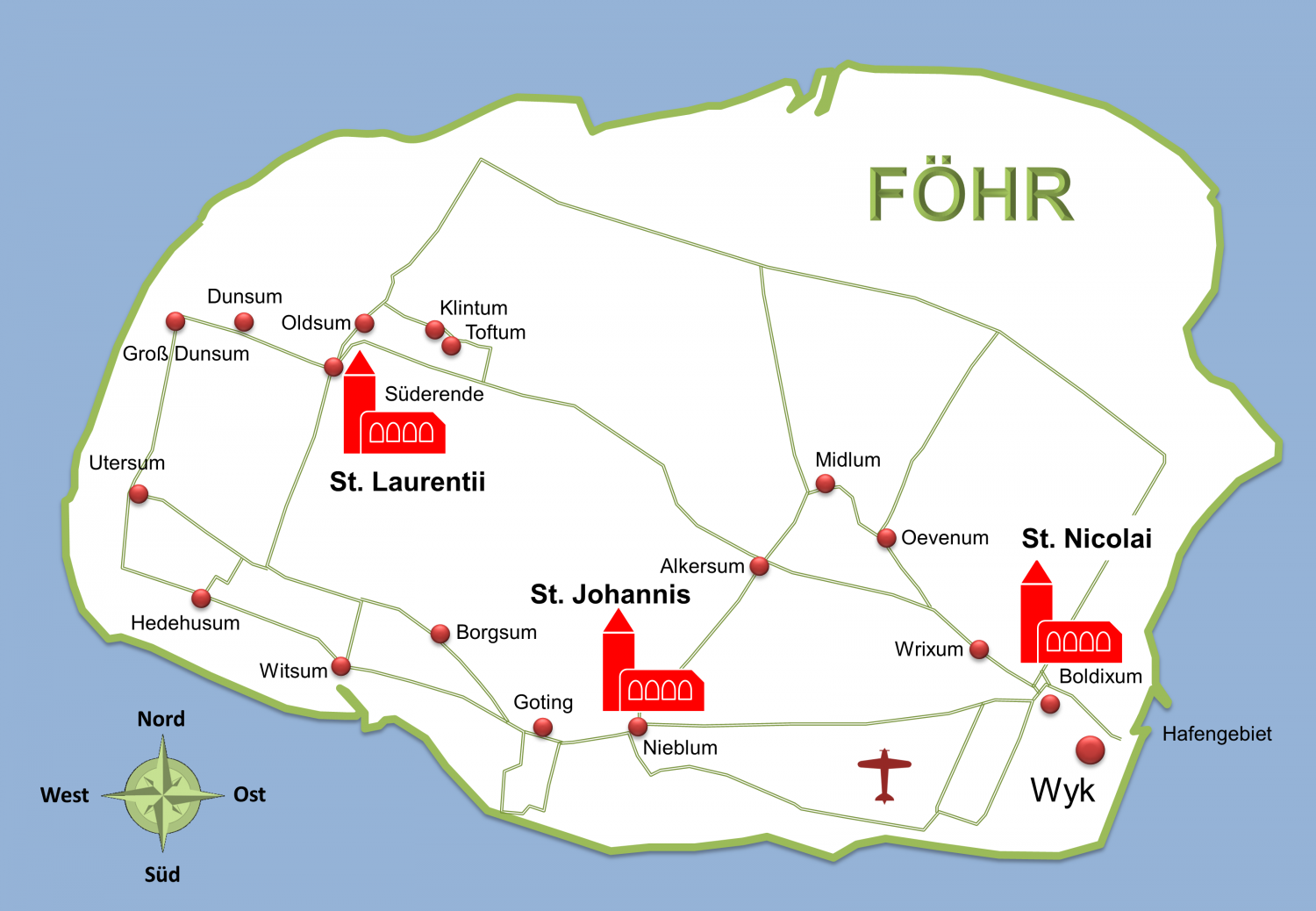 Feer, so die friesische Bezeichnung der 83 Quadratkilometer großen und damit größten deutschen Insel ohne Landverbindung. Die grüne Insel, gelegen im Windschatten von Amrum und Sylt ist eingerahmt von 22 Kilometern grachsbewachsenen Deichen und 15 Kilometer Sandstrand. Eine Stadt und 16 Ortschaften. Drei Sprachen werden hier gesprochen: Friesisch, Plattdeutsch und Hochdeutsch, legendäre Walfänger und Grönlandschiffer waren hier im 17. und 18. Jahrhundert beheimatet und seit zehn Jahren wandern die Föhrer traditionell am Himmelfahrtstag einmal rund um die Insel, die im Herzen des UNESCO Wattenmeer-Weltkulturerbe liegt. Föhr erreicht man komfortabel via Fähre von Dagebüll aus. Die Überfahrt selbst dauert 50 Minuten und ist im Regelfall unabhängig vom Gezeitenstand, da eine Fahrtrinne ausgebaggert wurde.