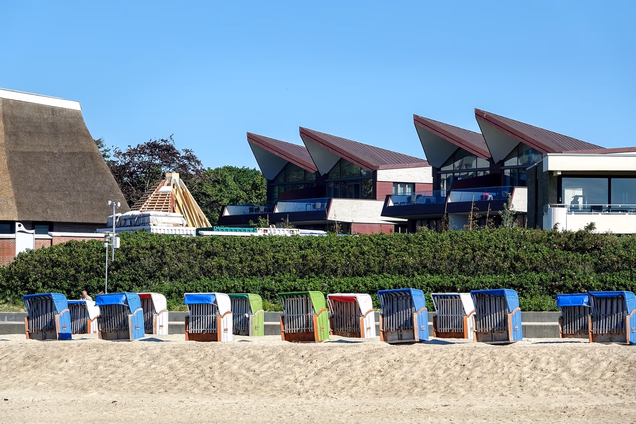 Der Fährankömmling hat die weißen, festländischen Mühlenwindräder im rückwärtigen Blickfeld und wird von den gigantischen Kränen am Wyker Sandwall, quasi als Gegenpol, zum Hingucken animiert. Eine riesige Baustelle von immerhin 23.000 Quadratmetern auf dem Projektgrundstück zwischen Gmelinstraße und Strandpromenade ist der Hingucker aller vorbeiflanierender Gäste und wohl auch vieler Insulaner. Bauherr ist Herr Wolfgang Müller, ein Föhrfan aus Hamburg, der die „Friesische Karibik“ im privaten Ferienhaus, das ebenfalls auf dem Gelände errichtet wird, genießen kann. Für die Hotelbediensteten werden Wohnungen im Wyker Sanddornweg gebaut.