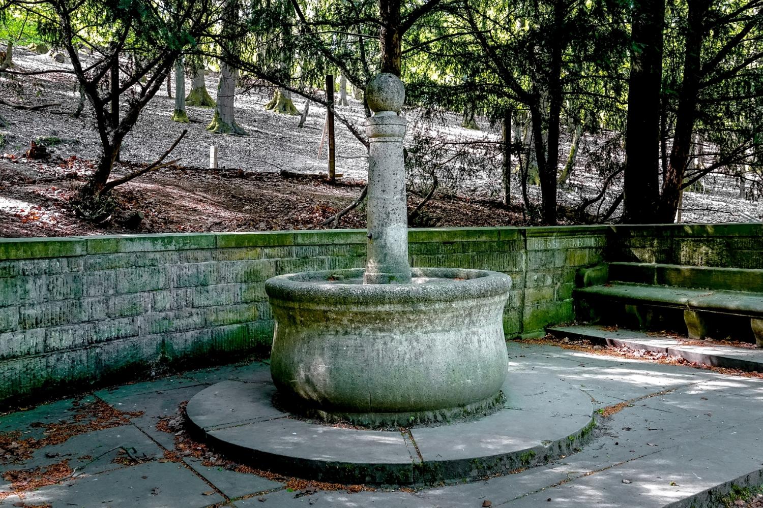 Zwischen dem Damwild-Gehege und dem Wildschweingehege befindet sich der Dönhoff-Brunnen. Mehr als 100 Jahre ziert er die Parkanlage am Hohenstein, umgeben von Sitzbänken, umringt von Bäumen. Die Brauerei Dönhoff, vor vielen Jahrzehnten ansässig am Crengeldanz, stiftete einst das steinerne Staffageobjekt – am 15. September 1914. Warum genau die Brauerei den Brunnen für die Parkanlage stiftete, ist unklar. Auf der Internetseite der Stadt Witten heißt es zur Historie, die Brauerei beziehungsweise die Familie hinter der Brauerei habe den Brunnen zum hundertjährigen Bestehen des Unternehmens gespendet. Andere Quellen geben jedoch an, dass die Brauerei erst im Jahr 1845 gegründet worden ist. Demnach wäre der Brunnens zum 70-jährigen und nicht zum hundertjährigen Bestehen gestiftet worden. Mit dem Anlass – ein mehr oder weniger rundes Bestehensjahr – darüber sind sich die Quellen aber einig. Doch während der Brunnen die Jahrzehnte überdauerte und heute immer noch dort steht, wo die Familie Dönhoff ihn platzieren ließ, ging die Brauerei unter. Mitte der 1920er Jahre wurde sie der Bochumer Schlegel-Brauerei angegliedert, die Brauerei in Witten wurde stillgelegt. An sie erinnert heute der Dönhoff-Brunnen, ein Waldbrunnen umringt von Sitzgelegenheiten, „wie man ihn auch in Schlossgärten findet“, heißt es in dem Buch „Skulpturen, Brunnen und Male in Witten“. Seine Autoren bezeichnen das 2,60 Meter hohe architektonische Schmuckwerk gemeinsam mit Bergerdenkmal und Haarmannstempel als „architektonisch-künstlerischen Akzent in diesem von Wald durchsetztem Gebiet“.