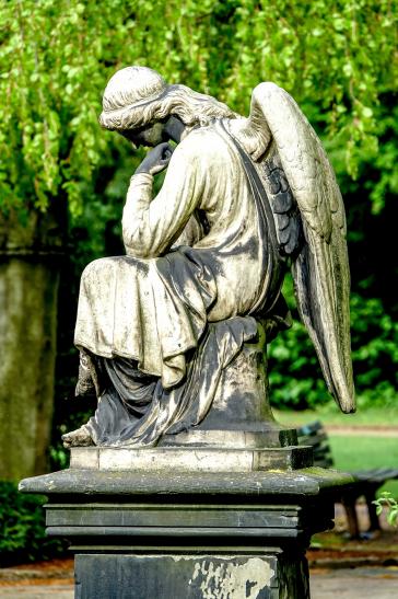 (Beschädigte) Engelsskulptur auf dem Grab der Helene Krumphaar geb. Braumann (A698)
