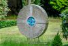 Kleiner stehender Stein mit Palmzweig und polierter Tafel.