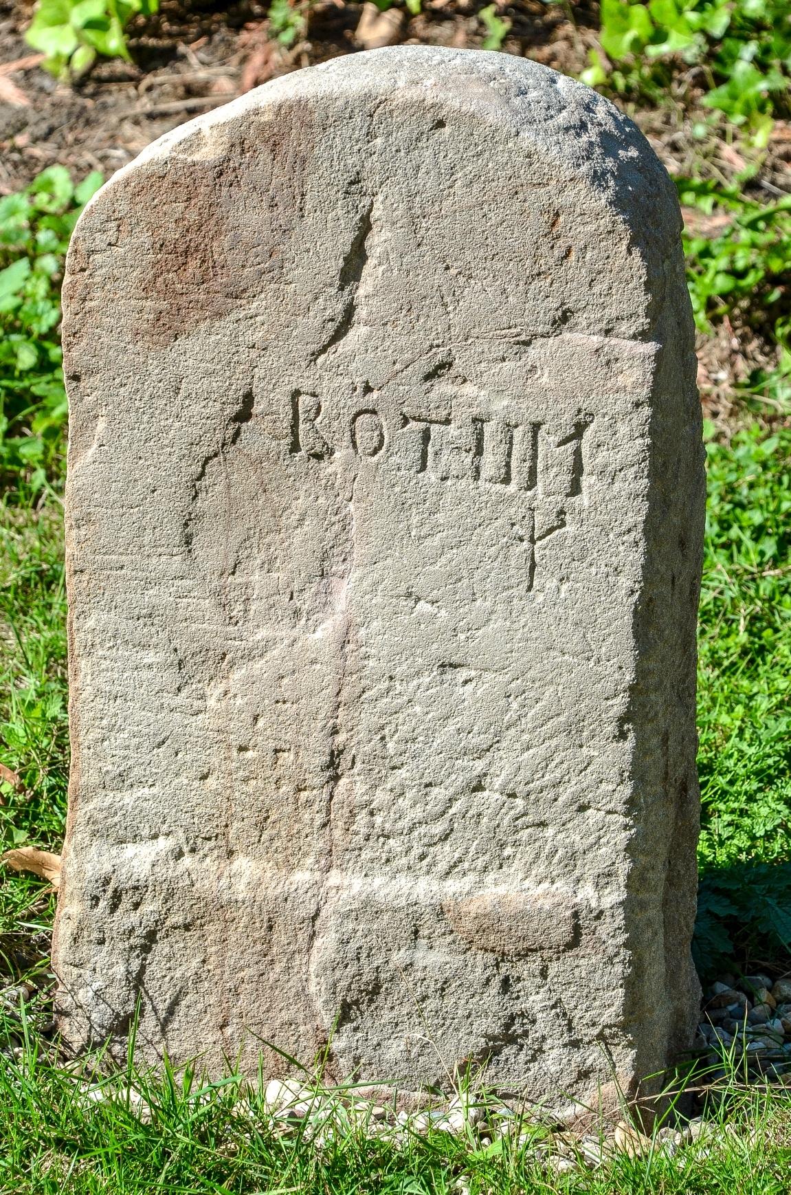 Mehr als der Name ist auf diesem Grabstein nicht zu finden. Das R unterhalb des U und des M deutet auf einen korrigierten Rechtschreibfehler hin.