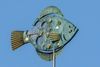 ▲ Kupferplakette an der Hausfassade der ehemaligen Deutschen Seemannsschule in Finkenwerder: Segelschiff in der Brandung.