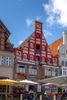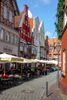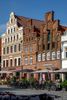Der Lüneburger Stintmarkt im Wasserviertel ist neben der Westlichen Altstadt das Herzstück der Stadt. Seinen Namen bekam der Markt, wie es der Name schon andeutet, vor allem weil hier einst fleißig Stint gehandelt wurde. Der Stint ist ein kleiner, lachsartiger Fisch, der zum Laichen über die Elbe bis in die Ilmenau schwamm und im Mittelalter genau hier in rauen Mengen gefangen wurde. Direkt gegenüber vom Stintmarkt wurde er dann im Alten Kaufhaus verkauft. Auch die Lüneburger Saline war damals am Stint sehr präsent, denn von hier aus wurde das „weiße Gold" verladen und Richtung Ostsee in die große, weite Welt verschifft. Als Symbol und inzwischen längst zum heimlichen Wahrzeichen Lüneburgs gereift, zeugt der Alte Kran am Stint noch heute von dieser Zeit. Heute ist der Stint eine der beliebtesten Kneipenmeilen der Stadt, denn in den pittoresken alten Giebelhäusern befinden sich beliebte Kneipen, Bars und Restaurants. Bei gutem Wetter trinken die Lüneburger hier ihr Bier oder ihren Wein direkt am Wasser mit Blick auf die Ilmenau. An lauen Sommerabenden herrscht schnell ein buntes Treiben und der Stintmarkt verwandelt sich mit seinem speziellen Charme in eine große Freiluftszenerie mit südländischem Flair.
