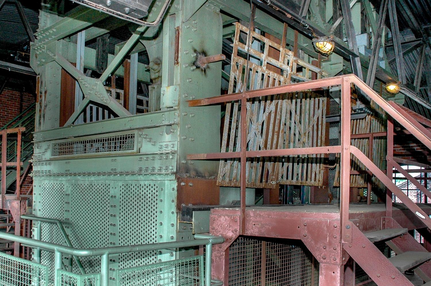 Kippeinrichtung für Hunte. Als Hunt oder Hund wird in der Bergmannssprache ein offener, kastenförmiger Förderwagen bezeichnet.