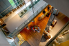 Im Erdgeschoss des RömerMuseums öffnet sich die Basilika auf ganzer Länge. Im Foyer ist eine fast 30 Quadratmeter große römische Bodenschicht begehbar unter Glas in den Boden eingelassen. Antike Fußspuren und Abdrücke von Tierpfoten und Karrenrädern stehen als einstimmendes Motto für das, worum es im LVR-RömerMuseum geht: um Menschen und ihre Spuren in der Geschichte.