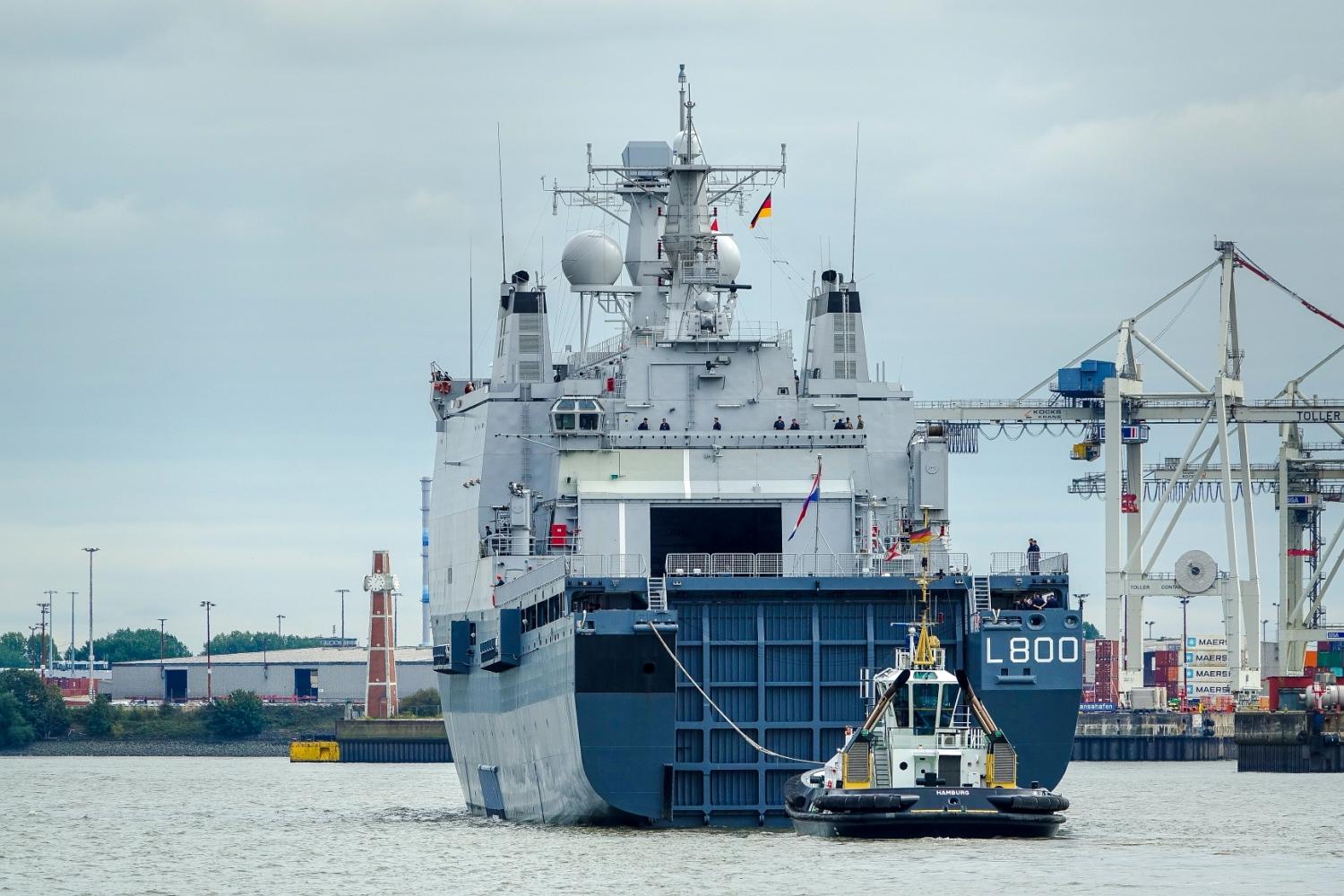 Am 20.09.2019 ist das amphibische Marineschiff HNLMS ROTTERDAM der Royal Netherlands Navy in Hamburg an der Überseebrücke eingetroffen. Die Bezeichnung amphibisches Marineschiff ist eine irreführende Übersetzung aus dem Englischen, da das Schiff selbst nicht amphibisch – also an Land und Wasser einsetzbar –, sondern lediglich ein Träger für amphibische Fahrzeuge ist. Die sinngemäße Übersetzung wäre daher Schiff für amphibische Angriffe.