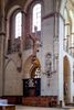 ▲ Ein besonders qualitätvolles spätgotisches Epitaph ist das des Domdechanten Dietrich Fransoys, der 1442 starb. Das querrechteckige Relief ist von einer mit Blattwerk gefüllten Kehle umgeben. Seitlich erheben sich Fialen, von denen geschweifte Kielbögen mit Krabbenbesatz den oberen Rahmenabschluss des Epitaphs bilden. Im Zentrum ist der Gekreuzigte Christus zu erkennen, dessen Blutstropfen zwei Engel auffangen. Hier sind lediglich die Körper erhalten, während die Köpfe Wohl von den Wiedertäufern abgeschlagen wurden. Links ist Maria im Dreiviertelprofil zu sehen in bewegter Haltung mit weich schwingendem Gewand, während ganz links der Stifter vom Schutzpatron Johannes Baptist empfohlen wird. Johannes Baptist, der Rufer in der Wüste, ist, wie typisch, in ein Fellgewand gekleidet. Vor dem knienden Stifter mit seinem runden, vollplastischen Gesicht erscheinen Helm und Wappen. Auf der anderen Seite neben Johannes dem Evangelisten, der mit Inbrunst auf den Gekreuzigten blickt, ist der heilige Paulus mit Buch zu sehen. Das Relief, deren Figurengewänder feinsinnig mit weich fließenden Gewandfalten, typisch für den weichen Stil, durchgebildet sind, zeugt zugleich von großer Innigkeit, wie die unter dem Kreuz stehenden Maria und Johannes mit ihren bewegten Haltungen und Gebärden zum Ausdruck bringen. Von gleicher Gewichtung sind die Gruppe des Johannes des Täufers mit dem Stifter und auch die Paulusfigur. Interessant ist die Tatsache, dass offenbar Teile des Epitaphs in der Zeit nach den Wiedertäuferzerstörungen erneuert worden sind.