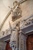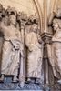 ▲ Zuseiten eines großen Gitters befinden sich die Figuren der klugen und törichten Jungfrauen, die aus dem Gewände des ehemaligen Festportals. Sie wurden wohl um 1620/30 von Gerhard Gröninger im Stil des Manierismus geschaffen. Die Klugen waren an dem nördlichen, die Törichten am südlichen Gewände des Westportals von 1516 angebracht. Die klugen Jungfrauen sind alle der Maria zugewandt, während die anderen sich in verzweifelten Gesten zum Teil nach innen bzw. nach außen wenden. Die Figuren sind von außergewöhnlicher Eindringlichkeit. Sie tragen antikische Gewänder die aus einem Kleid und einem darüber liegenden Mantel bestehen, die in weich gemuldeten, ungewöhnlich plastischen Faltenstrukruren herabfließen und unter denen sich der Körper deutlich sichtbar abzeichnet. Die klugen Jungfrauen tragen die nach oben gerichteten Lampen, sie werden den himmlischen Bräutigam Christus kennenlernen. Die törichten Jungfrauen hingegen haben ihre Lampen bereits benutzt und kein zusätzliches Öl für ihre Lampen mitgeführt, wie die nach unten gerichteten Lampenkörper verdeutlichen.