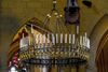 lm Chor des Domes hängt der Radleuchter mit einem Durchmesser von drei Metern. Wenn seine 55 Kerzen entzündet sind, bietet er einen imponierenden Anblick. Seine Kreis-Form als Speichen-Rad symbolisiert das Ewige, Unvergängliche, Vollkommene. Radleuchter stellen den Betrachtern meist das Bild des himmlischen Jerusalems vor Augen. Der münstersche Radleuchter ist in Form eines Rosenkranzes gestaltet - 50 goldene Rosen sind zu sehen, dazu fünf Engel, die die fünf Wunden Christi aufzeigen. Davor das Triumphkreuz von 1270/80. Es zeigt Jesus nicht als leidenden Herrn, sondern als König und ewigen Hohenpriester.