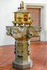 ▲ Im Osten des nördlichen Seitenschiffs steht auf einer Kreuzblume des Westturms der von Bernhard Kleinhans 1982 aus Bronze geschaffene Tabernakel. Eine Bildgestaltung mit Verweisen auf das Alte und das Neue Testament wie auch die symbolhaften Deutungen sind ganz auf das Geheimnis der Eucharistie bezogen.