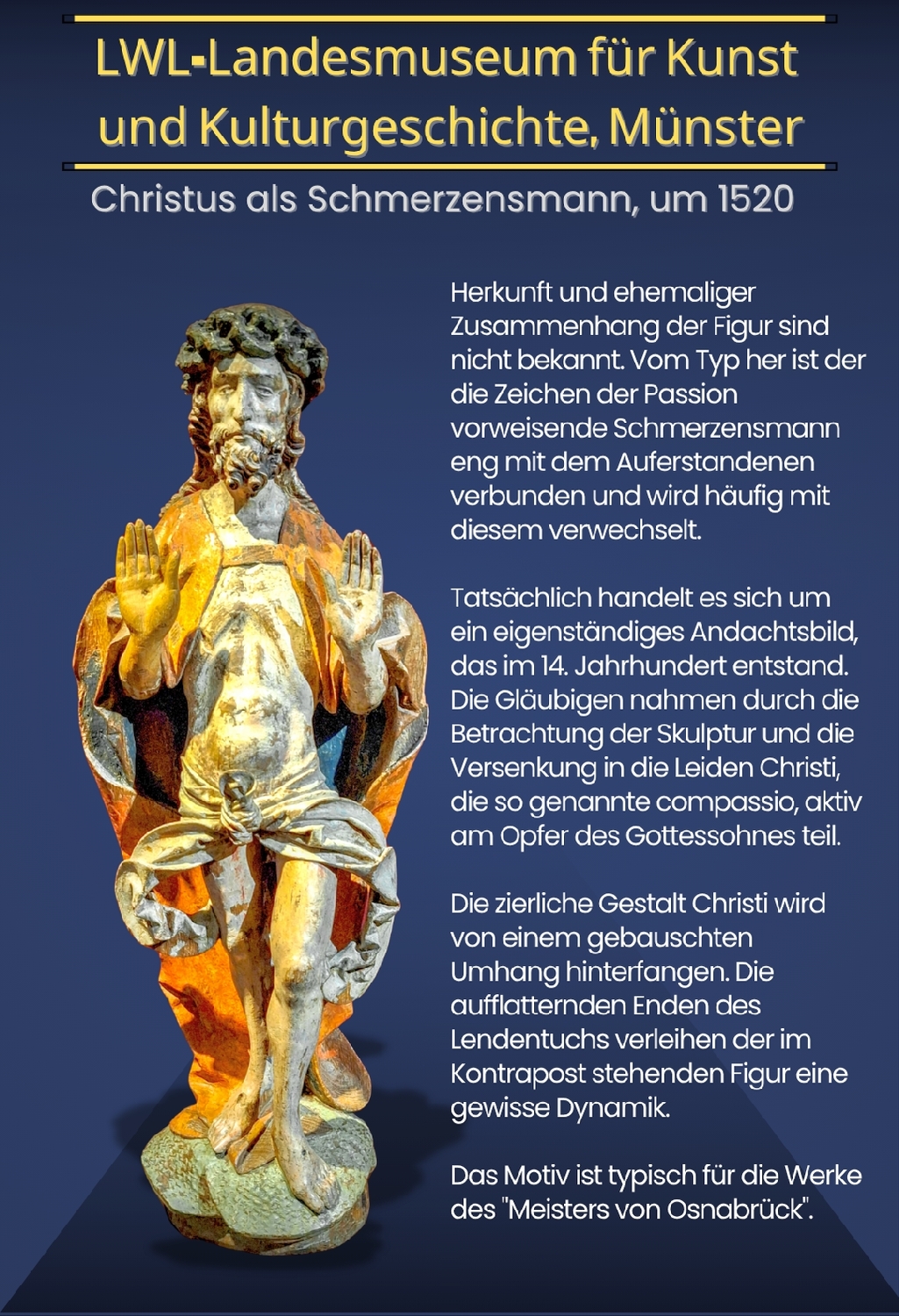 Im Mittelalter ist künstlerisches Schaffen nur im religiösen Kontext denkbar. Kirchen und Klöster sind die Hauptauftraggeber und nehmen Einfluss auf die Bildinhalte. Die Künstler selbst verstehen sich zumeist als ausführende Kunsthandwerker. Sie sind in Zünften organisiert und bleiben in der Regel anonym. Oft reisen sie zu verschiedenen Kunstzentren, übernehmen dort Anregungen und schaffen Gemeinschaftswerke, so dass Datierungen und Zuschreibungen schwierig sein können. Für einen mittelalterlichen Maler oder Schnitzer steht die Selbstverwirklichung oder die Schaffung eines individuellen Kunstwerks nicht im Vordergrund. Da viele Menschen nicht lesen können, übernehmen ihre Bildwerke die Aufgabe von Texten. Gleichwohl sind Grundkenntnisse der Bibel zum Verständnis der Bilder und Figuren vorauszusetzen. Die oftmals komplexe Symbolsprache umfasst Farbgebung, Darstellungsart und Einzelmotive. Sie kann in der Regel nur mit umfangreichen Kenntnissen entschlüsselt werden, was den besonderen Reiz der Bildwerke des Mittelalters ausmacht.