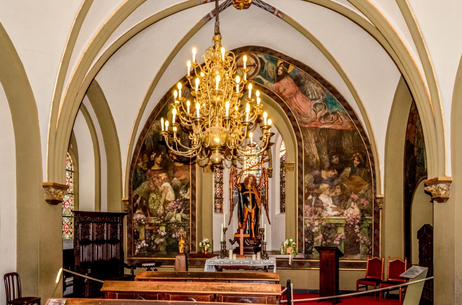 Die Kapelle im neugotischen Stil war einstmals nur den Grafen von Berg und ihren Familien vorbehalten. Über dem Altar wacht die über 2 Meter große, bemalte Holzplastik des Erzengels St. Michael, eine Nachbildung der berühmten Statue in St. Andreas in Köln aus dem 15. Jahrhundert.