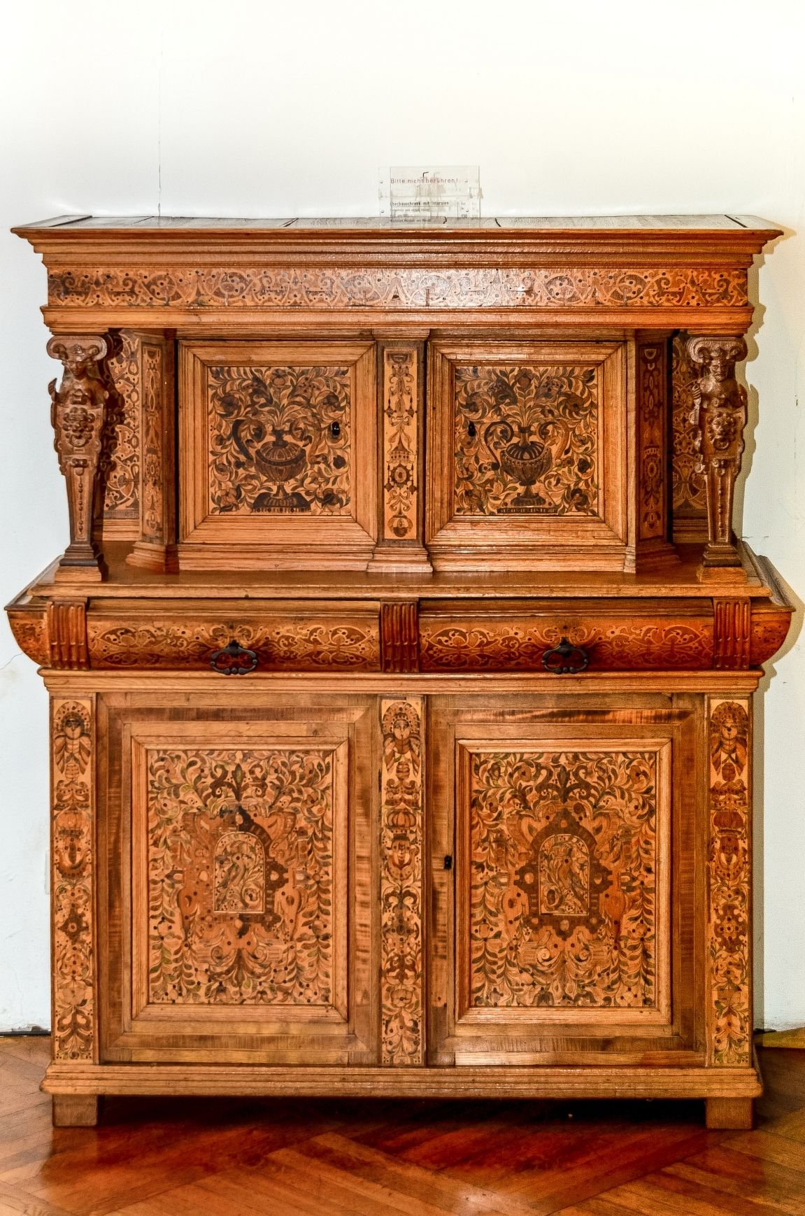 Kleiner, aber nicht minder prachtvoll ist die Kemenate. Sie war der Wohnraum der Grafenfamilie und nicht, wie man lange annahm, der Raum, in dem sich nur die Frauen aufhielten. Meist war die Kemenate der einzige Raum, der beheizt war. Die Wände über der schönen, kunstvoll geschnitzten Holzvertäfelung wurde - ebenso wie die im Rittersaal - nach der Jahrhundertwende (1905-1907) mit Szenen des adeligen Lebens auf einer Burg ausgemalt.