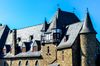 Schloss Burg ist so, wie man sich eine Burg vorstellt: Aus grob behauenen Steinen. Mit einem dicken Wehrturm, einem begehbaren Wehrgang, einem Verließ und einem Abort über dem Burggraben.