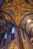 Gewölbekappen, Wandpfeiler und -zwickel, Fensterleibungen, Säulen und Dienste, Kapitelle und Basen der Basilika sind ausgemalt.