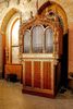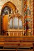 ▲ Auf der Westempore errichtete Ernst Seifert eine große Orgel mit zunächst 104 Registern. Gleichzeitig errichtete er auf einer kleinen Empore im nördlichen Querhaus ein Instrument mit 18 Registern auf einem Manual und Pedal, welches in einem Schwellkasten untergebracht war. Dieses Instrument diente als Chororgel; es hatte eine eigene Spielanlage und war über elektropneumatische Trakturen als Fernwerk vom vierten Manual des Hauptspieltisches der Hauptorgel aus spielbar.