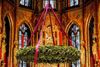 Das war nicht immer so. Lange Jahre waren alle Wände grau. 1864 hatte man die einfache, schlichte neue Pfarrkirche geweiht – die Antwort auf die immer größer werdenden Pilgergruppen, die sich auf den Weg in den Marienwallfahrtsort machten. Ein gewaltiges finanzielles Unterfangen für die kleine Gemeinde. Mitte 1891 begann dann der Kirchenmaler Friedrich Stummel und die in seinem Atelier beschäftigten Künstler mit der Ausmalung. Doch schon um 1904 herum war Schluss, den Kevelaerern ging das Geld aus. Nach dem Tod Stummels 1919 vollendete noch sein Schüler Heinrich Holtmann die Ausmalung der Ostteile der Basilika – Chöre und Querhaus – bis 1926. Zur Ausmalung des Langhauses kam es nicht mehr. Nach dem zweiten Weltkrieg war die Kirche Durchgangslager für 8000 Menschen – nicht nur die mächtige Seifert-Orgel, auch die Inneneinrichtung nahm großen Schaden.