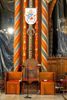 Im Altarraum der Marienbasilika weisen der „Umbraculum“ genannte Schirm sowie das Papstwappen und darunter das „Tintinnabulum“, eine kleine liturgische Glocke, darauf hin, dass die Kirche eine Basilika ist.